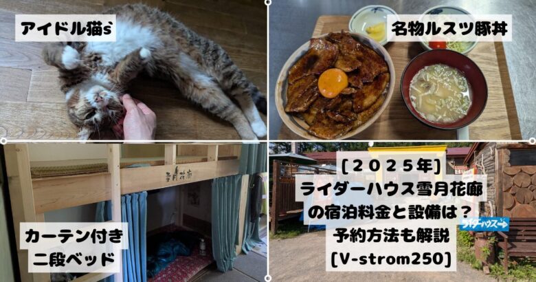 V-strom250Vlog [2025年]ライダーハウス雪月花廊の宿泊料金と設備は?予約方法も解説[V-strom250]