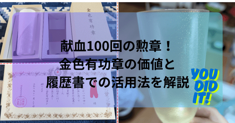 雑記 献血100回お礼の勲章品!金色有功章の価値と履歴書での活用法を解説