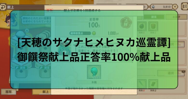 雑記 [天穂のサクナヒメヒヌカ巡霊譚]御饌祭献上品正答率100%献上品一覧