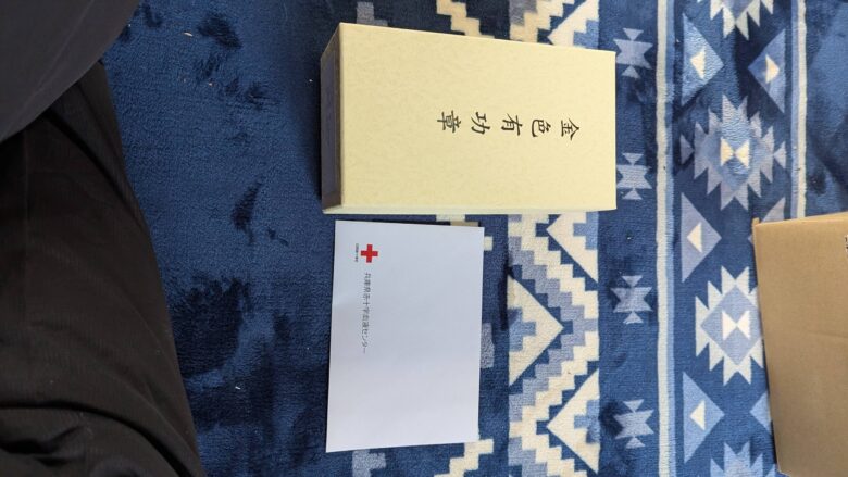 日本赤十字から金色有功章が送られてきたので開封の儀