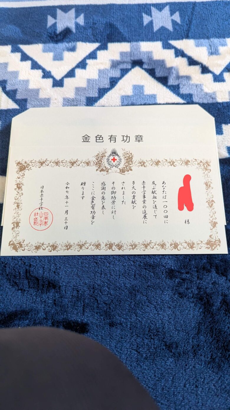 「献血100回達成」