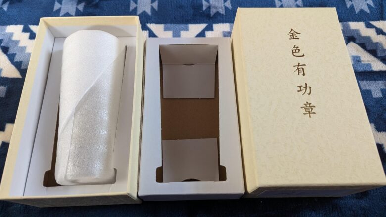下には金色有功章の文字入り箱が入っています