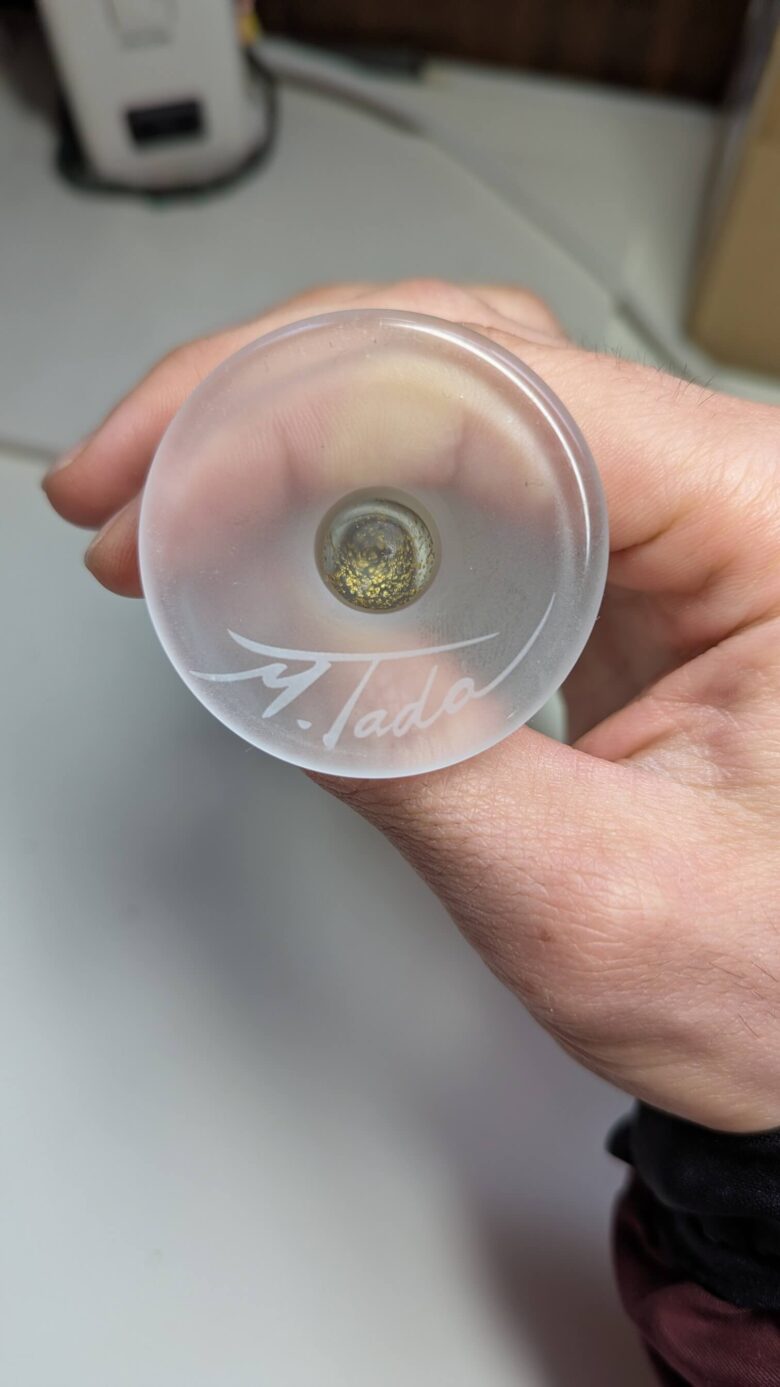 底は6cmと小さい綺麗な金色がちりばめられた器です