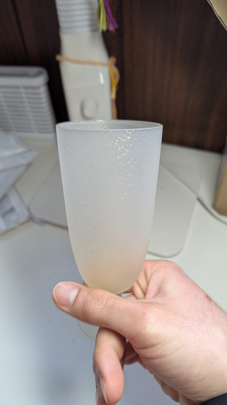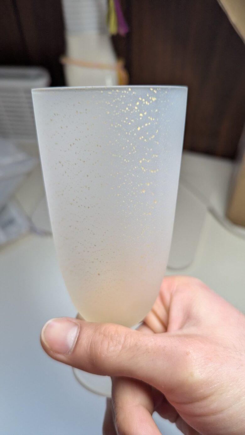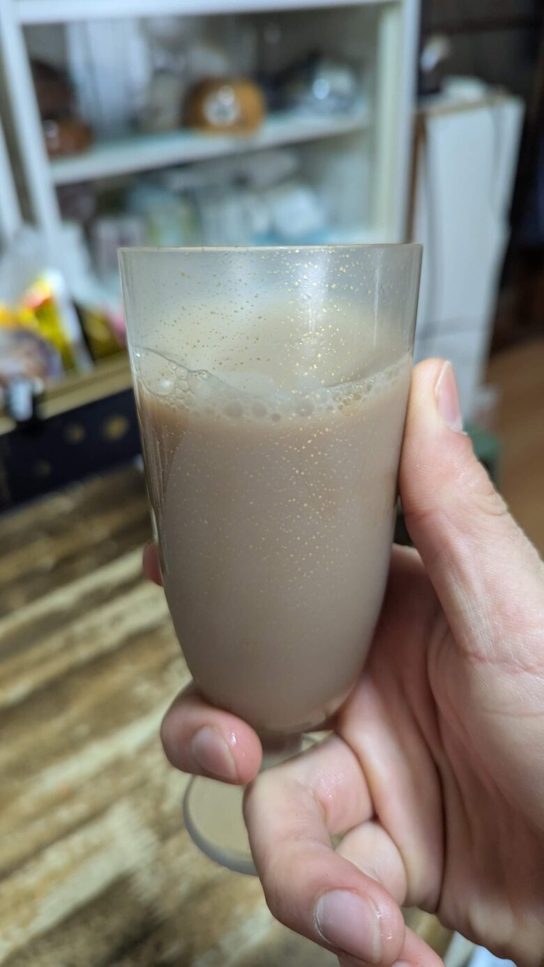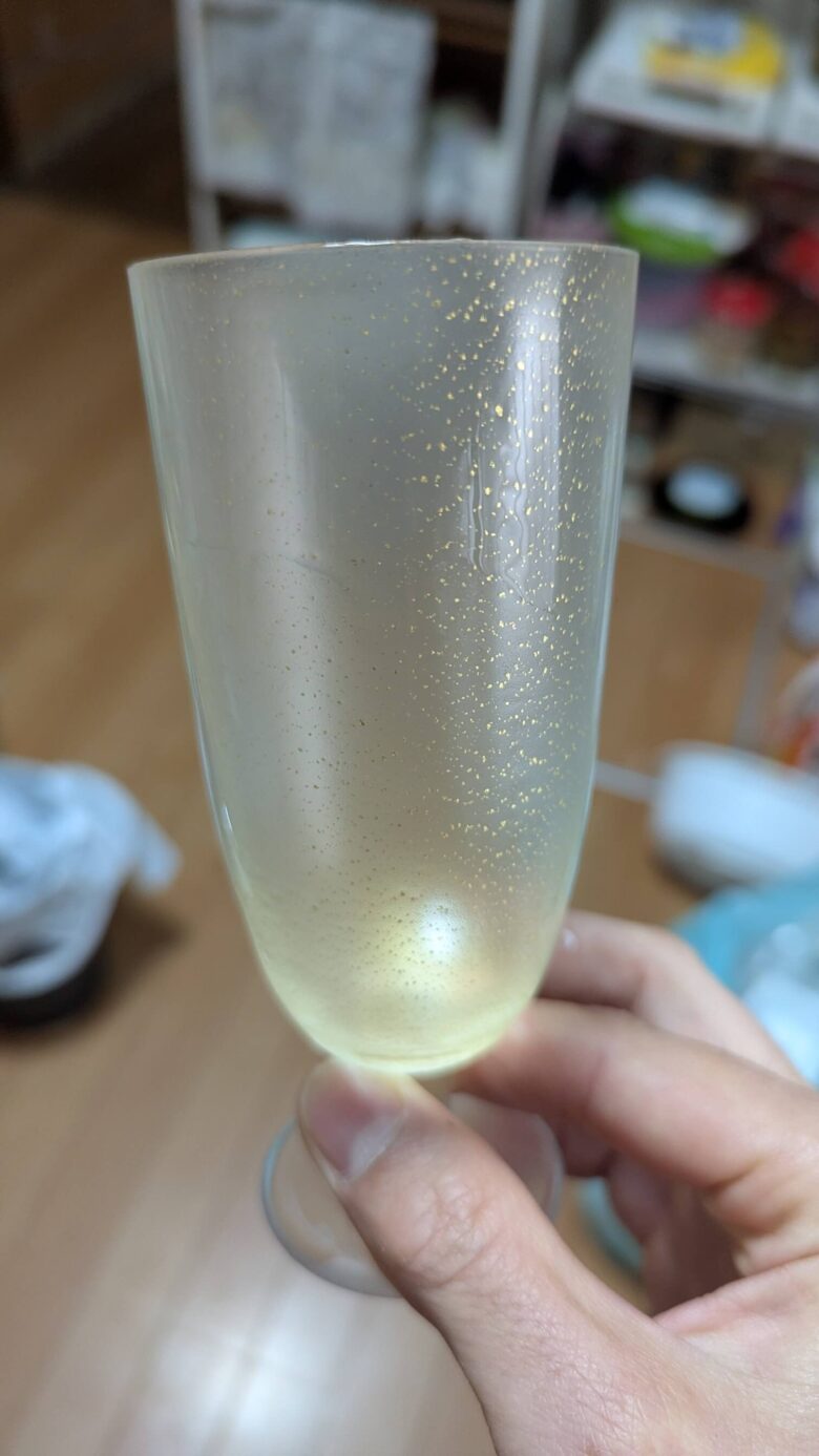金色有功章の器で飲み物を飲むと