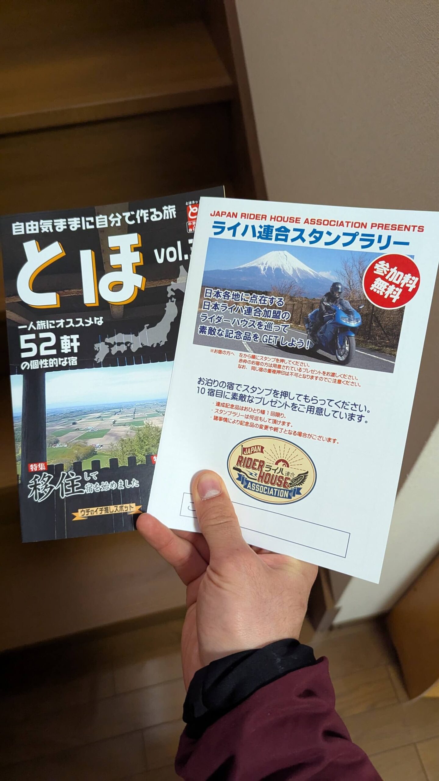 - とほ宿、ライダーハウススタンプラリーのスタンプどちらも貰える