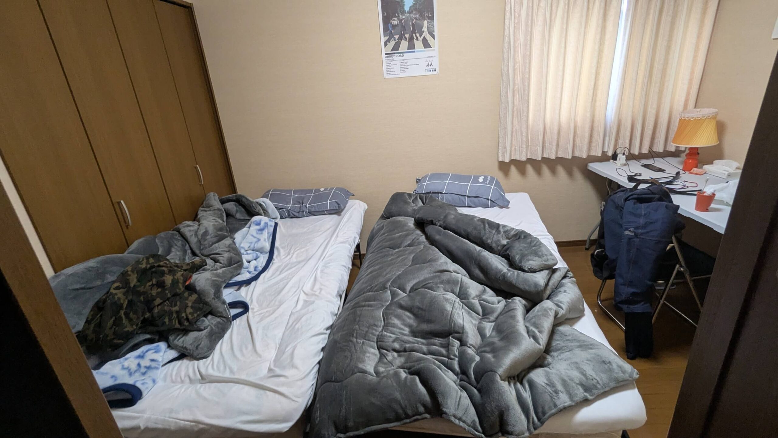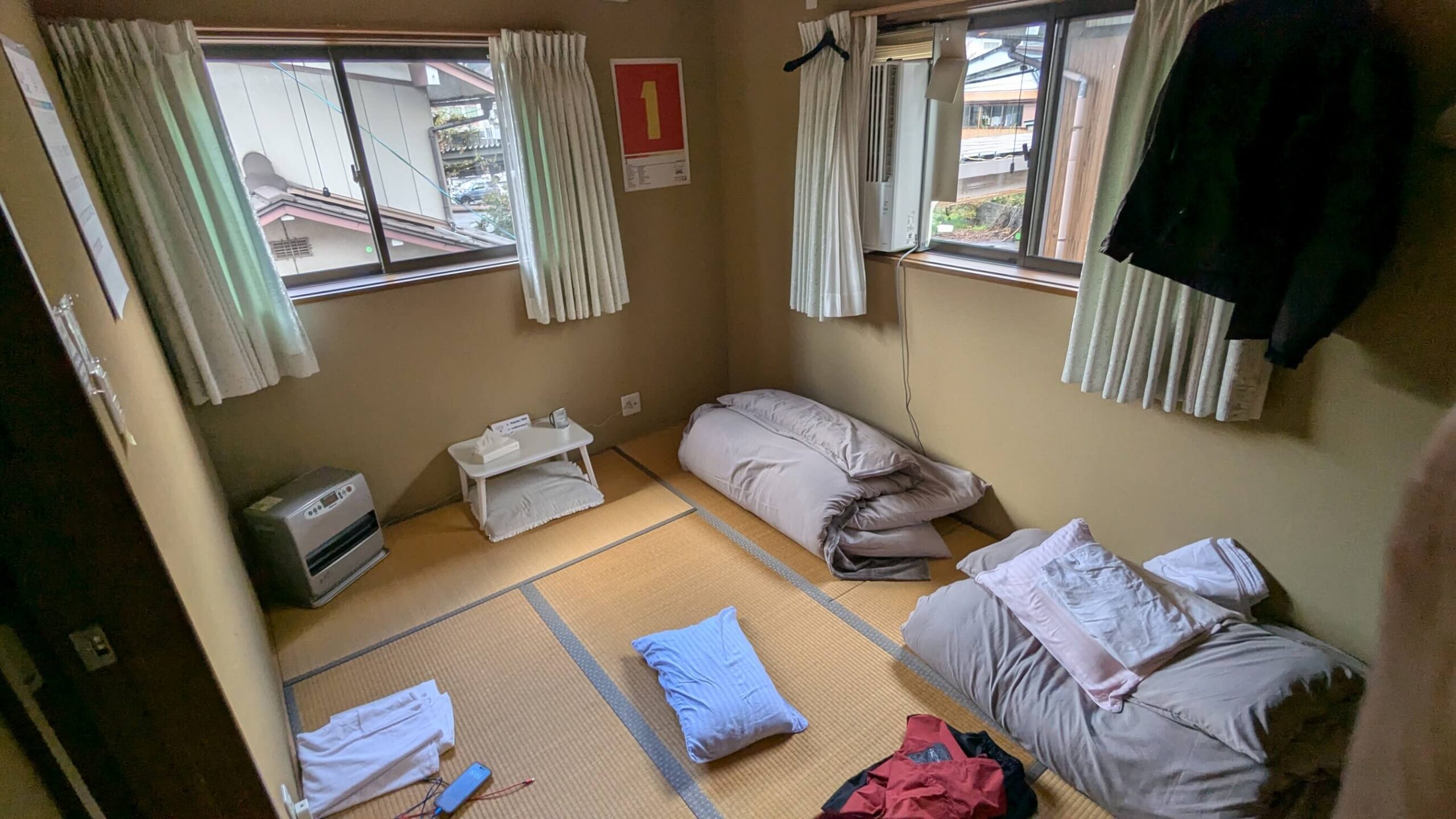 1階と2階に和室(敷布団)と洋室(ベッド)があります