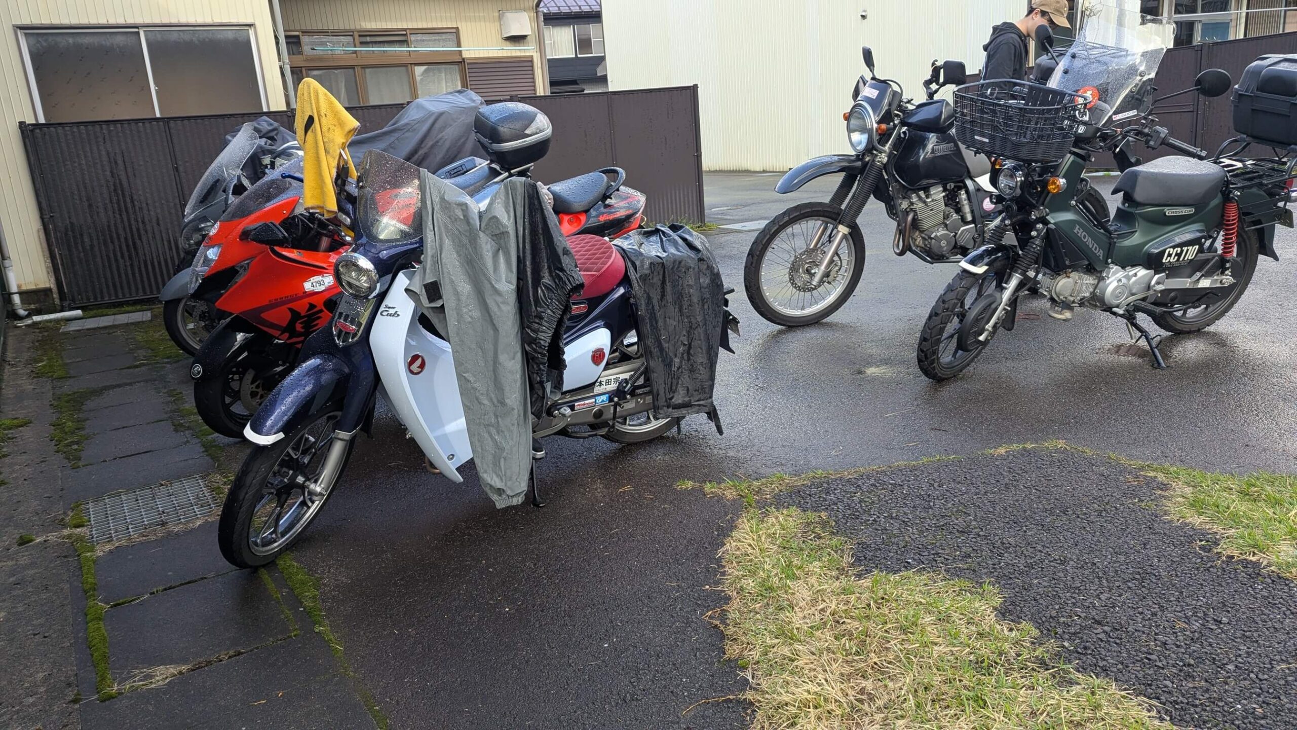 雨の日対応: 濡れたバイクウェアを浴室に干させてもらえるサービスがあり