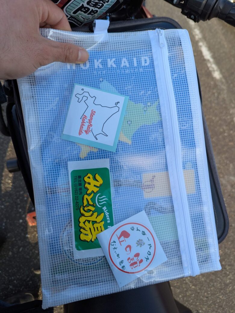 宿泊したライダーハウスステッカー+完泊ステッカーを付けていたら