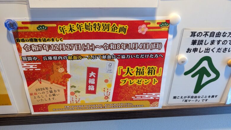 令和7年12月27日~令和8年1月4日の期間中に兵庫県内献血ルームで