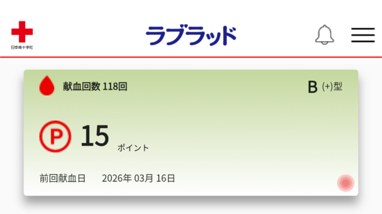 2026年3月16日現在で112回献血してます!