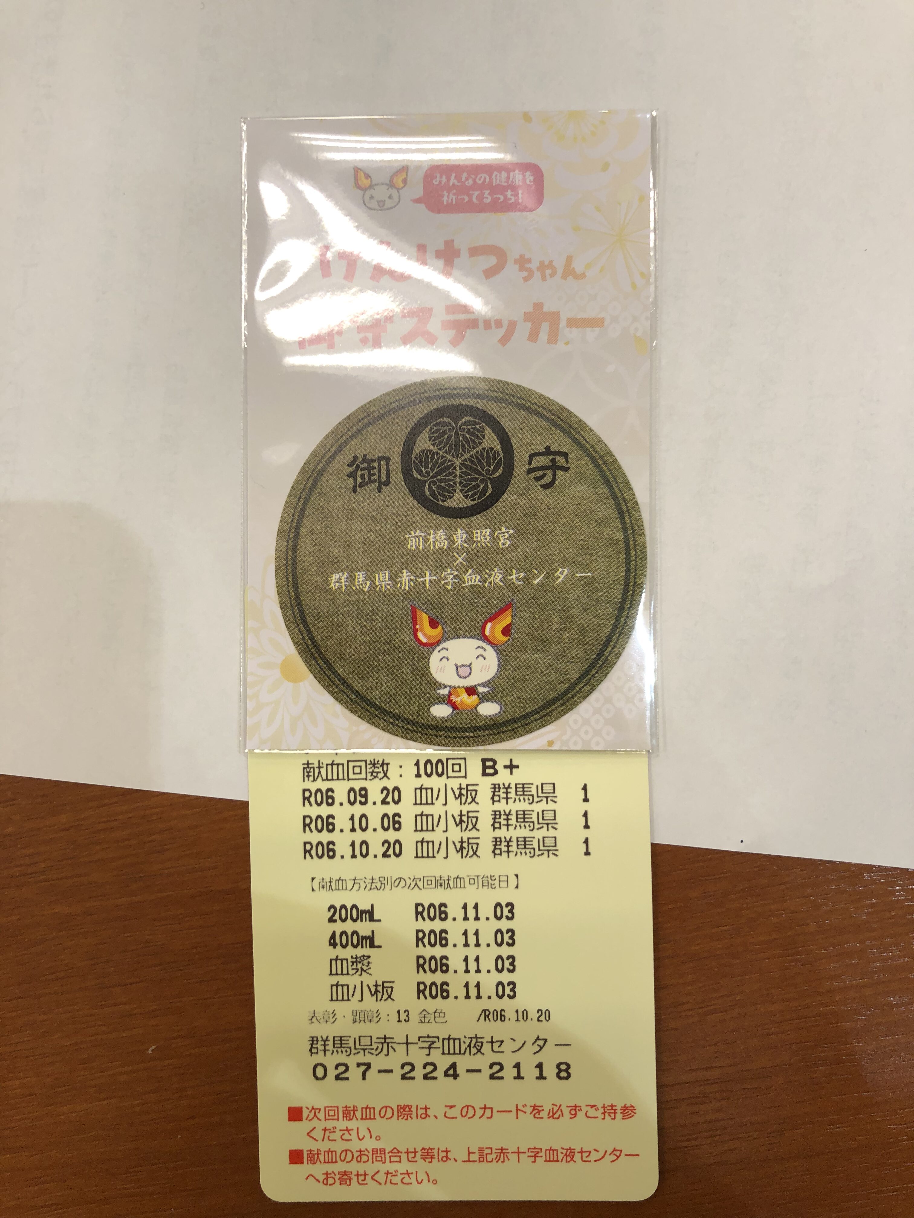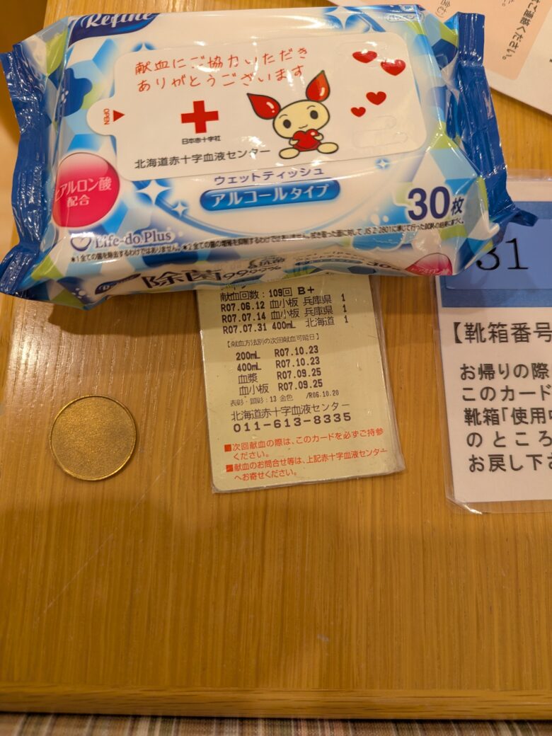 都道府県によって色々もらえるものも変わってきますので一度献血ルームで確認するのが