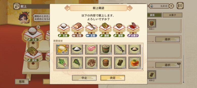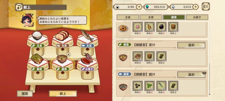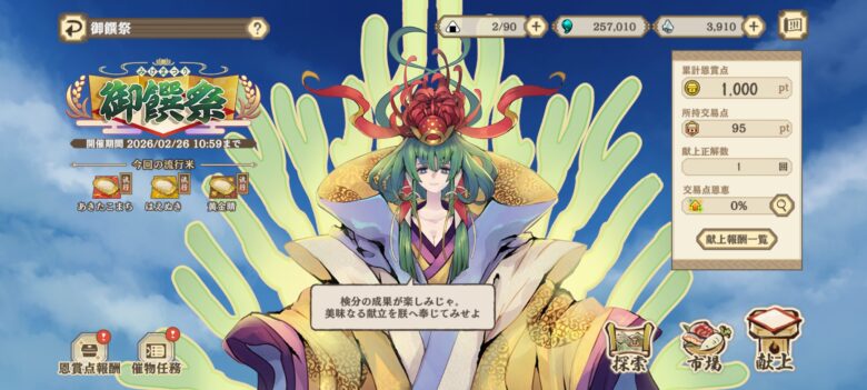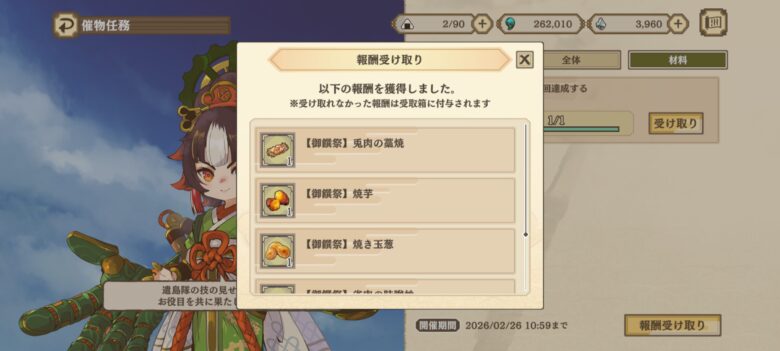 - 催物任務の材料で献上品のロックがはずれる