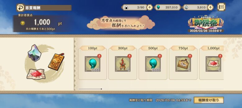 - 恩賞点報酬1000点分