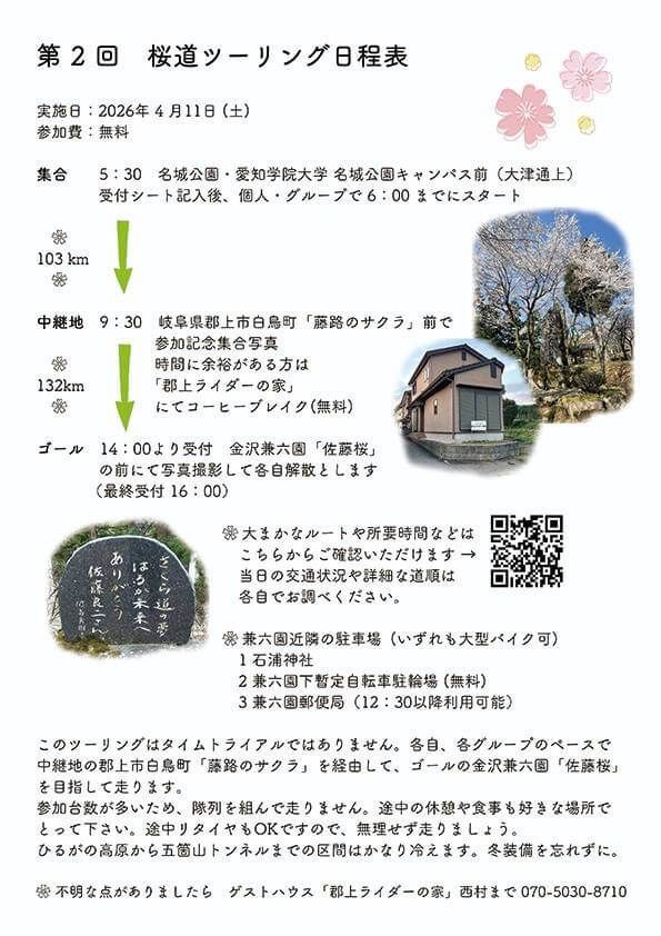 【2026年開催】さくら道バイクツーリング名古屋〜金沢で感動の桜道を走る260km![第2回]