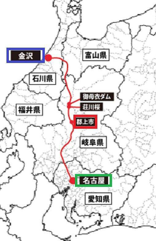 • 愛知県名古屋市~石川県金沢市兼六園までつながっている