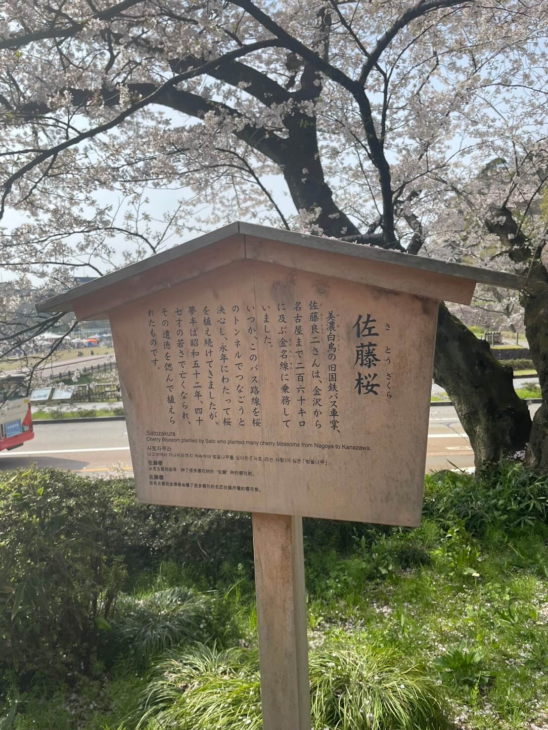 国鉄バスの車掌として働く傍ら名古屋〜金沢間の約260kmに自費で約2,000本の桜を植え続けました。