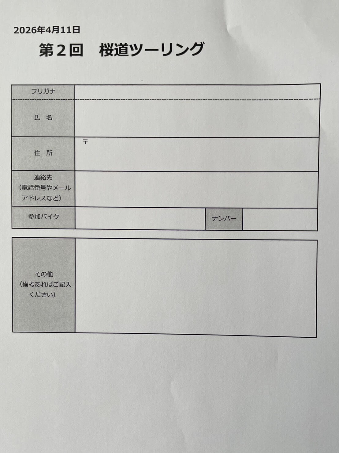 • 開催は2026年4月11日、参加費無料、バイクの車種は問いません