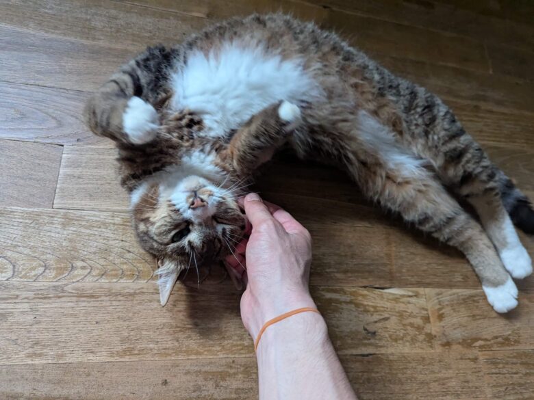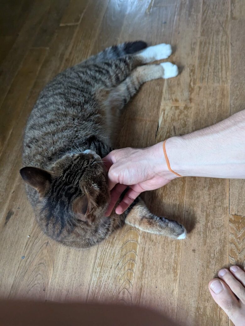 朝飯に魚が出ると椅子から狙ってくる猫なのにポチ