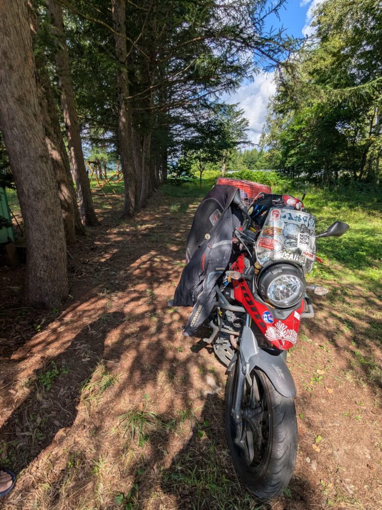 バイクはライダーハウスにすぐアクセスできる場所に