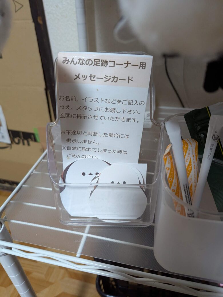 書いたメッセージカードは玄関左側壁に沢山貼られています!