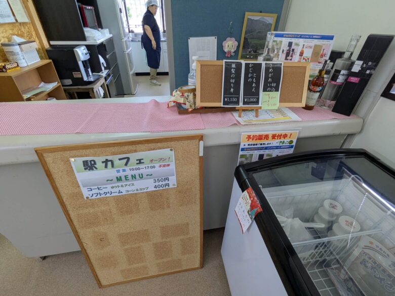 駅舎内には地元の特産品を紹介・販売するコーナーもあります。