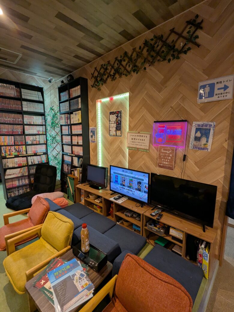温泉内にはゲーム機や漫画や雑魚寝スペースがあって